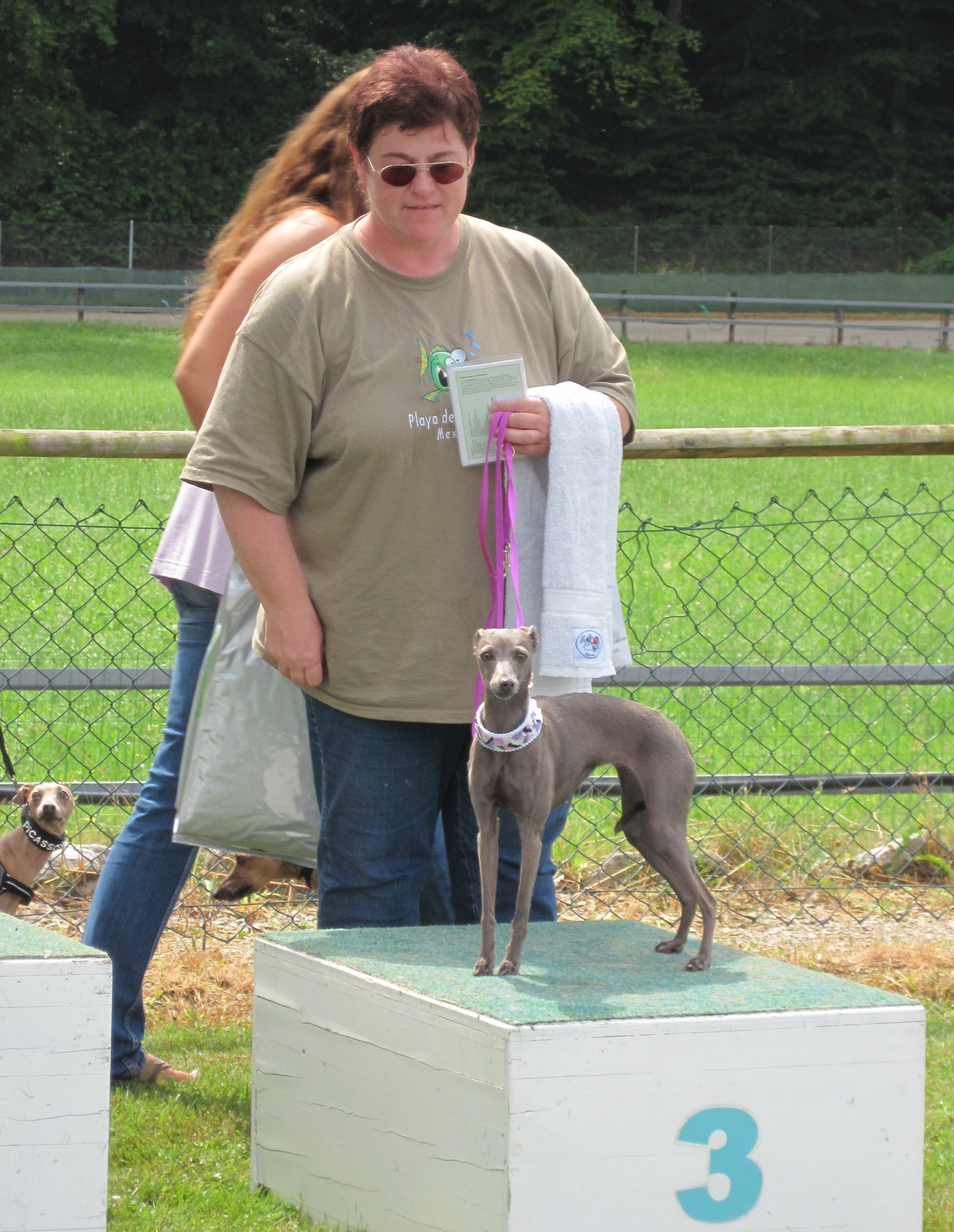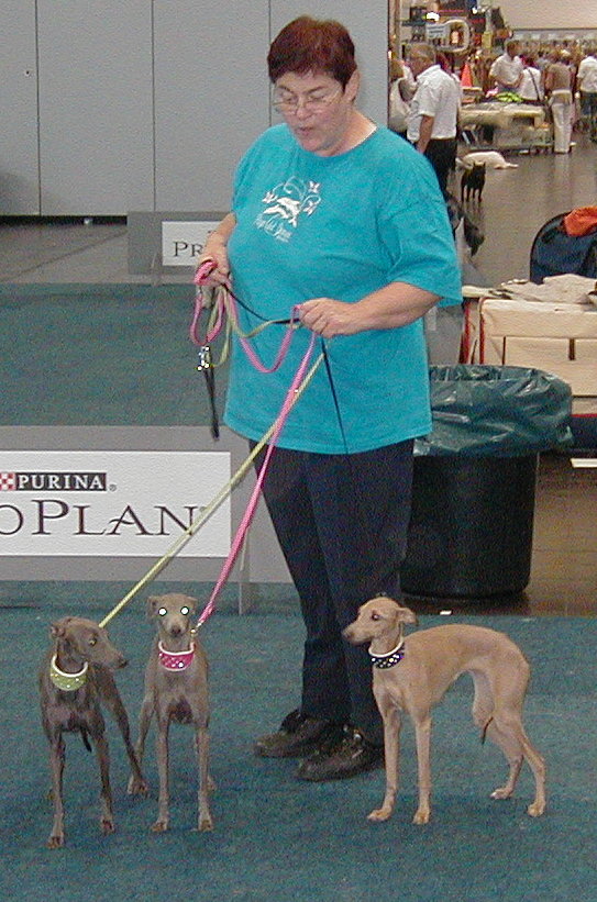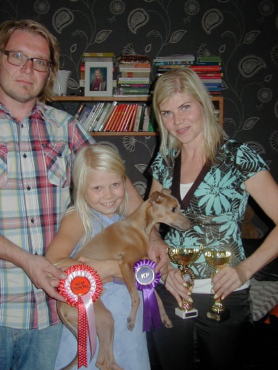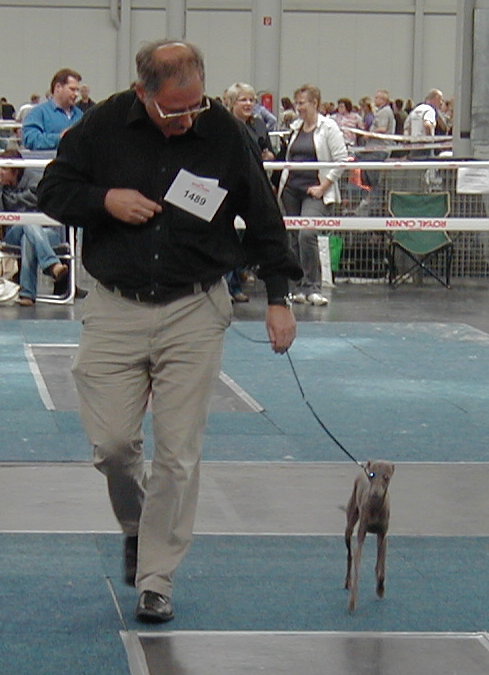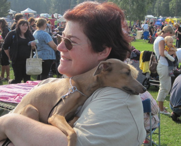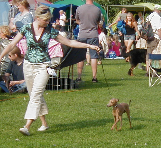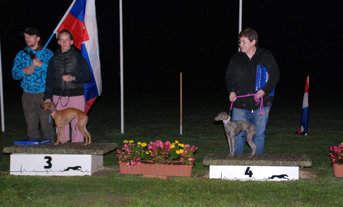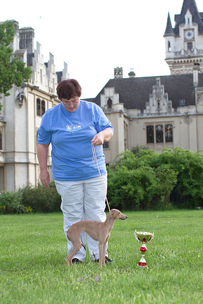 im Mai und Juni besuchten wir mit Grisabella einige Ausstellungen. Da sie immer noch topfit und sehr schön ist, wird sie gelegentlich in der Veteranenklasse ausgestellt. Da wir momentan keinen eigenen aktiven Rennhund haben (Grisabella hat mit 9 Jahren keine Rennlizenz mehr!) fuhren wir mit "Adorno" Anfang September zur Renn-Europameisterschaft nach Hünstetten. Gerald hatte zu dem Zeitpunkt keine Zeit und wir nützten die Gelegenheit um für "Bionda" auf Bräutigamssuche zu gehen, denn der Vater ihrer Welpen (Früjahr 2016!) soll neben Schönheit vor allem auch gutes Renn- bzw. Coursingtalent haben.