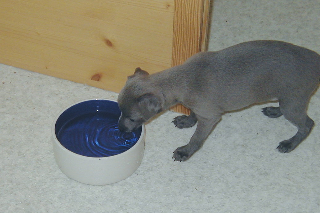 Inzwischen sind unsere Welpen 5 Wochen alt. Mit 3 Wochen probierten sie das erste Schabefleisch, tranken aber
