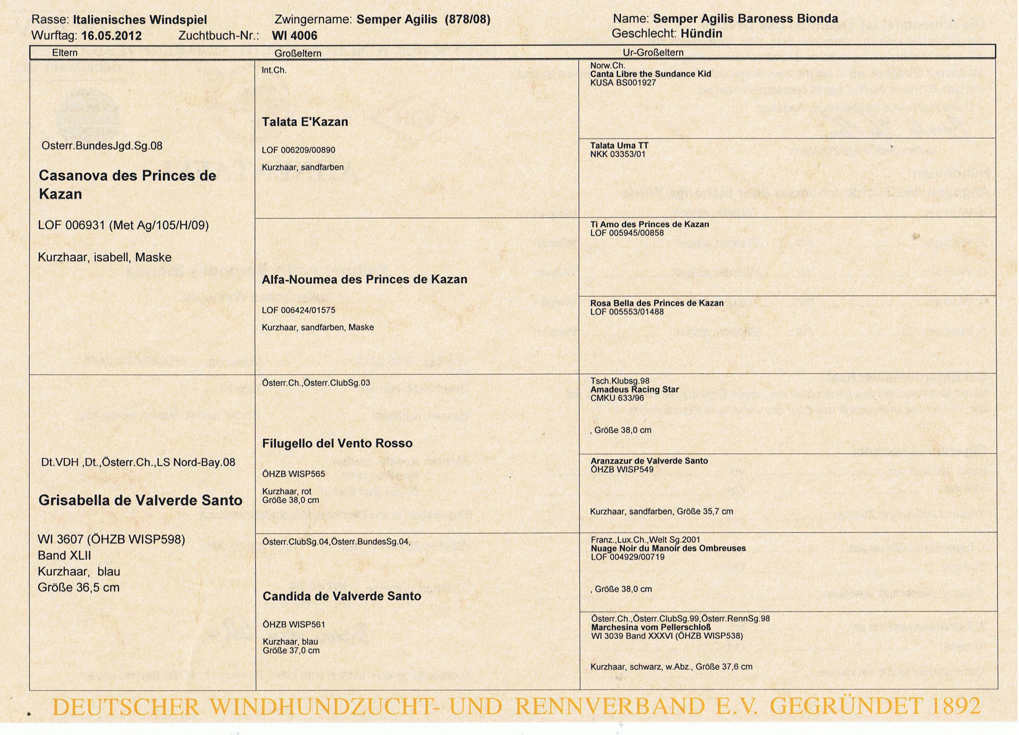 Ahnentafel / Pedigree Züchter: Renate Steffen